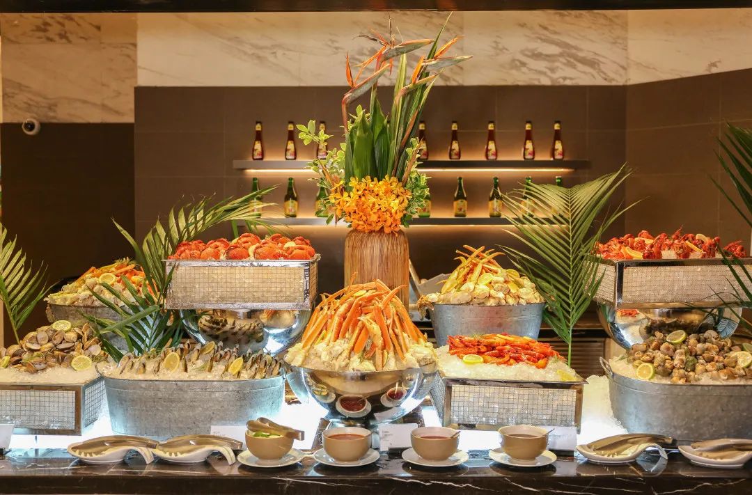 冰镇海鲜以新鲜品质,吸引了众多饕餮食客!肉质饱满青口贝、超大个花螺、Q弹南美甜虾、贵价货蟹腿铺满档口,统统不限量畅吃,鲜味十足!而且补货速度超快,永远不空档哦~~