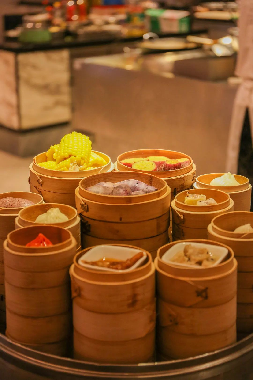 中式点心也是可圈可点!港式茶餐厅同款直接开摆!蒸鲜虾烧卖、各式杂粮(玉米,芋头,紫薯)!养生玩家也要安排!