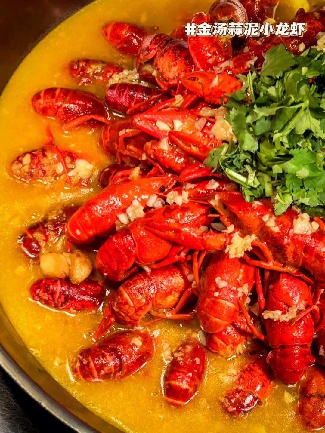 金汤蒜蓉龙虾:躺在蒜泥浆里的金黄灿灿,自带着香浓丰盈的香味儿,每每让人都十根手指轮着舔!剥好的龙虾超Q弹裹满蒜泥汤汁后再一口吃下,简直就是一种享受!