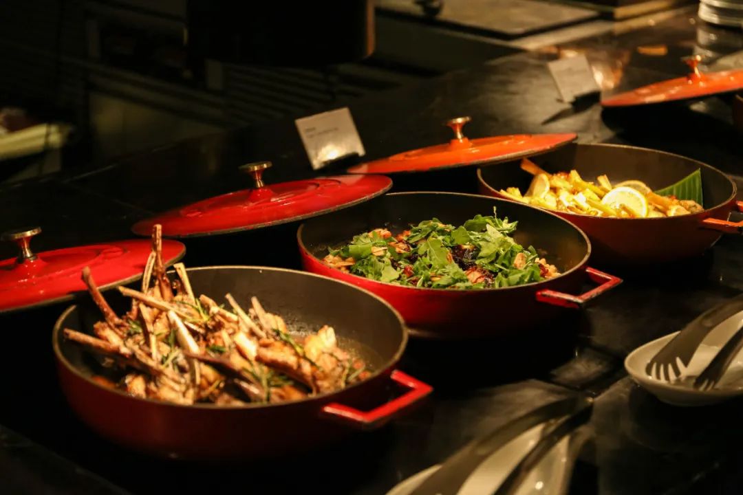 热菜档口汇聚中西菜色,品种丰富,每天都会有十余种中西热菜与大家见面,真的让小编惊掉下巴,这出品简直媲美单点!香煎羊排、烤鸭胸、香煎银鳕鱼、叉烧,烧鸡轻松满足食客们不同的口味!