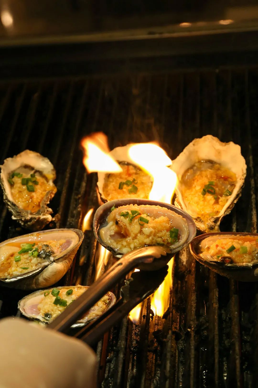 一刻不停散发香气的烧烤档,总是被吃货们偏爱!烧烤档不限量炭烤生蚝&天鹅贝任你选择!
