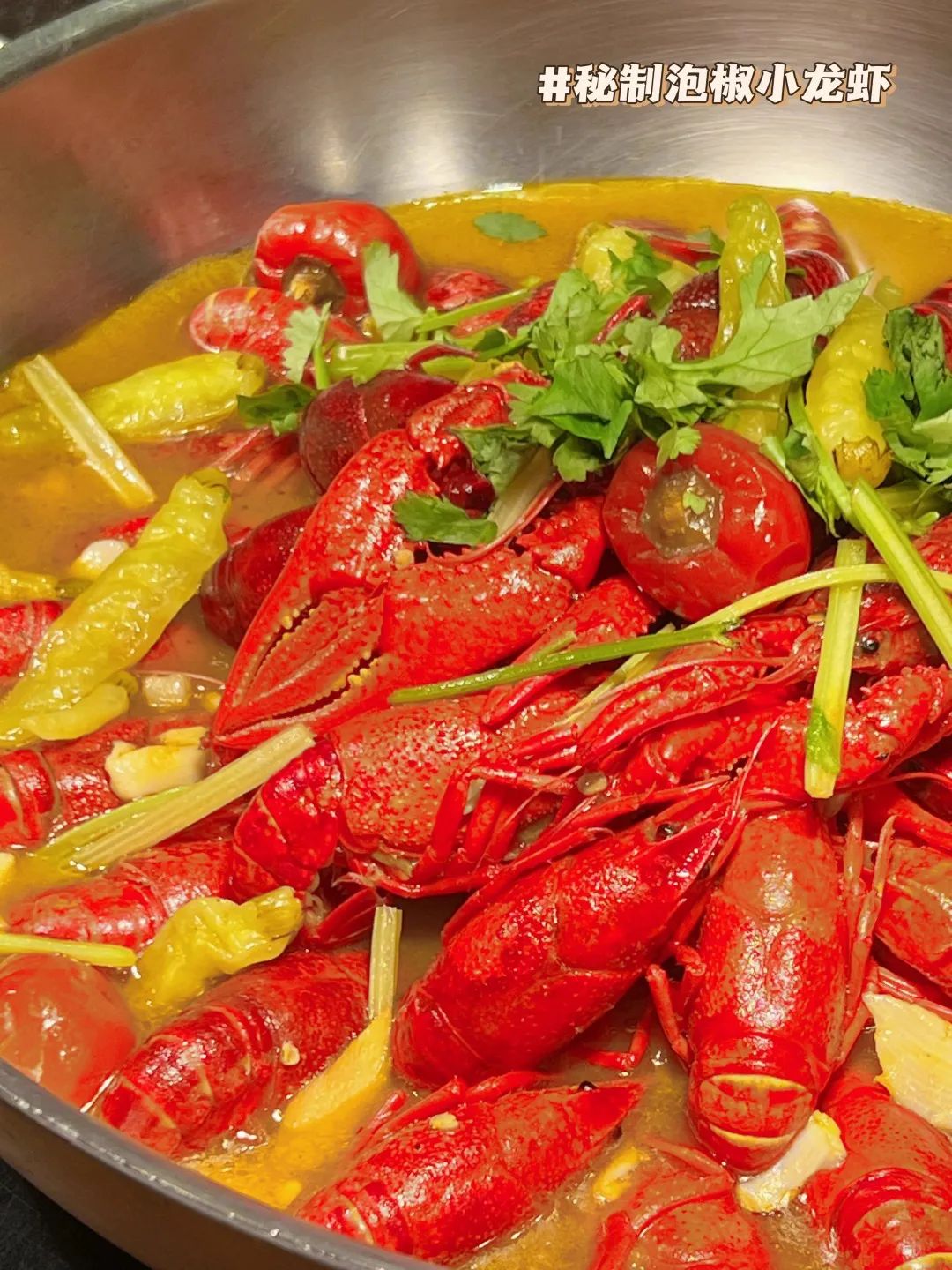 秘制泡椒小龙虾:掌柜的秘制研发的独家口味,没有泡椒的辛辣,没有蒜蓉的刺鼻,吃的第一口是浓郁的蒜蓉香,带有微微辣,两者的味道已经渗入到每一只的虾里面。