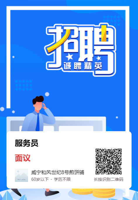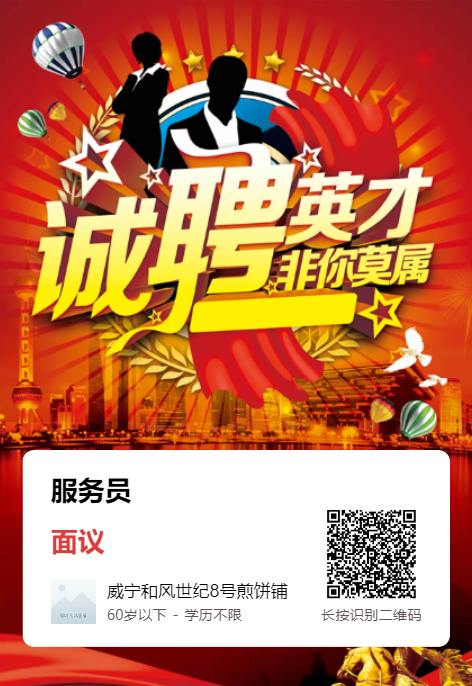 威宁会展中心和风世纪8号煎饼铺招聘服务员!工资面议+加班补助