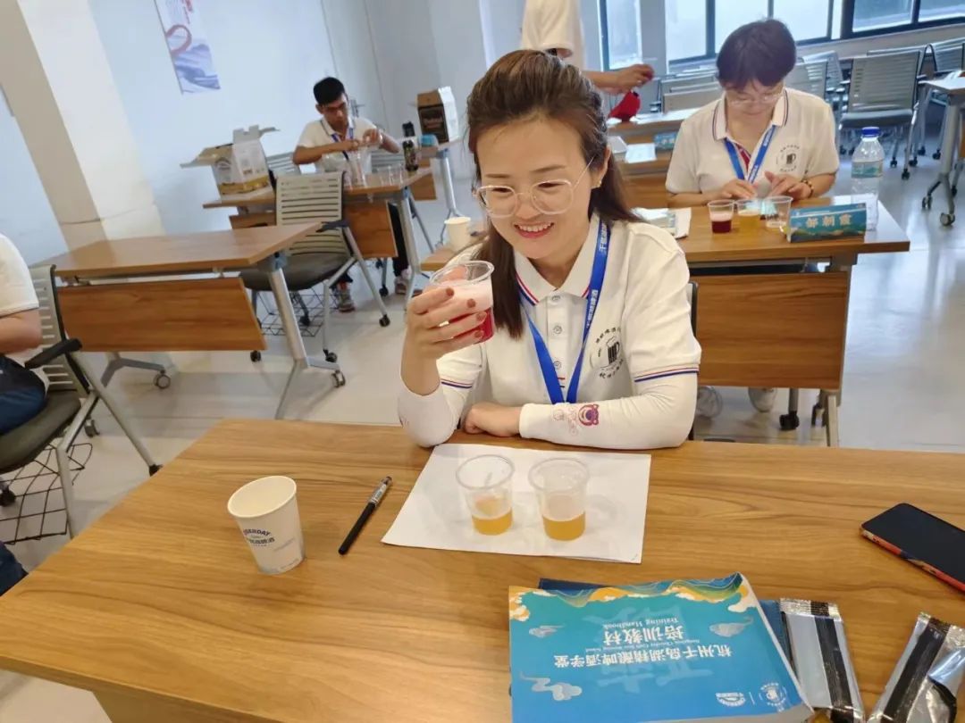 接着,刘中山教授带领学员们进行啤酒品评训练,学员们踊跃参与,从工作人员手中接过品评啤酒,亲自体验啤酒之间的微妙差异。