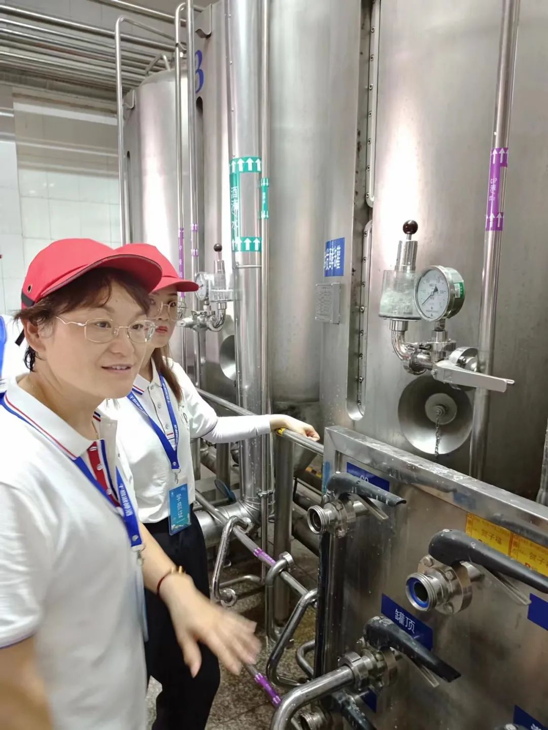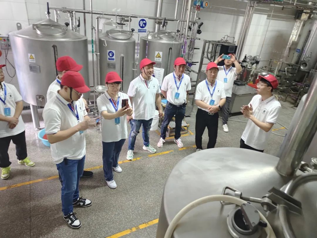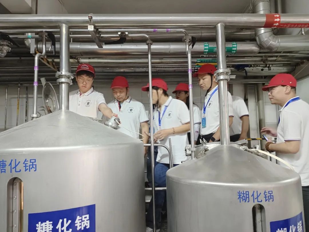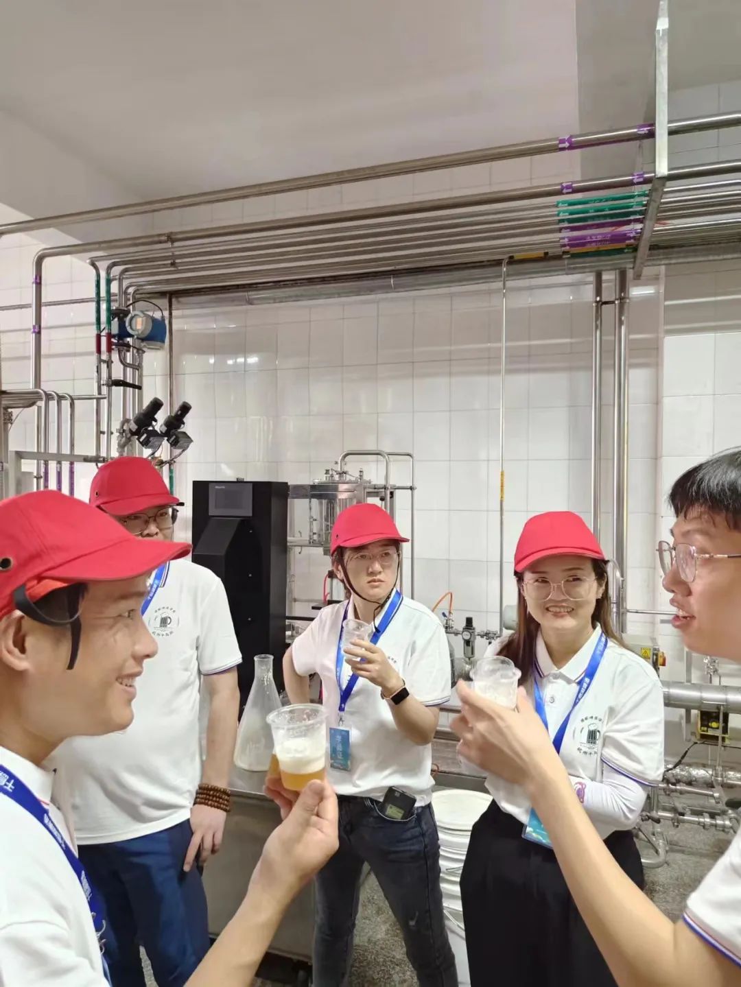 首先,千岛湖啤酒的老师们带着本期学员走访千岛湖啤酒中试线。带着对啤酒的热爱与好奇,学员们参与度高涨,一起沉浸式体验啤酒的酿造过程,将理论与知识串联起来进行实践,瞬间点燃了课堂氛围。