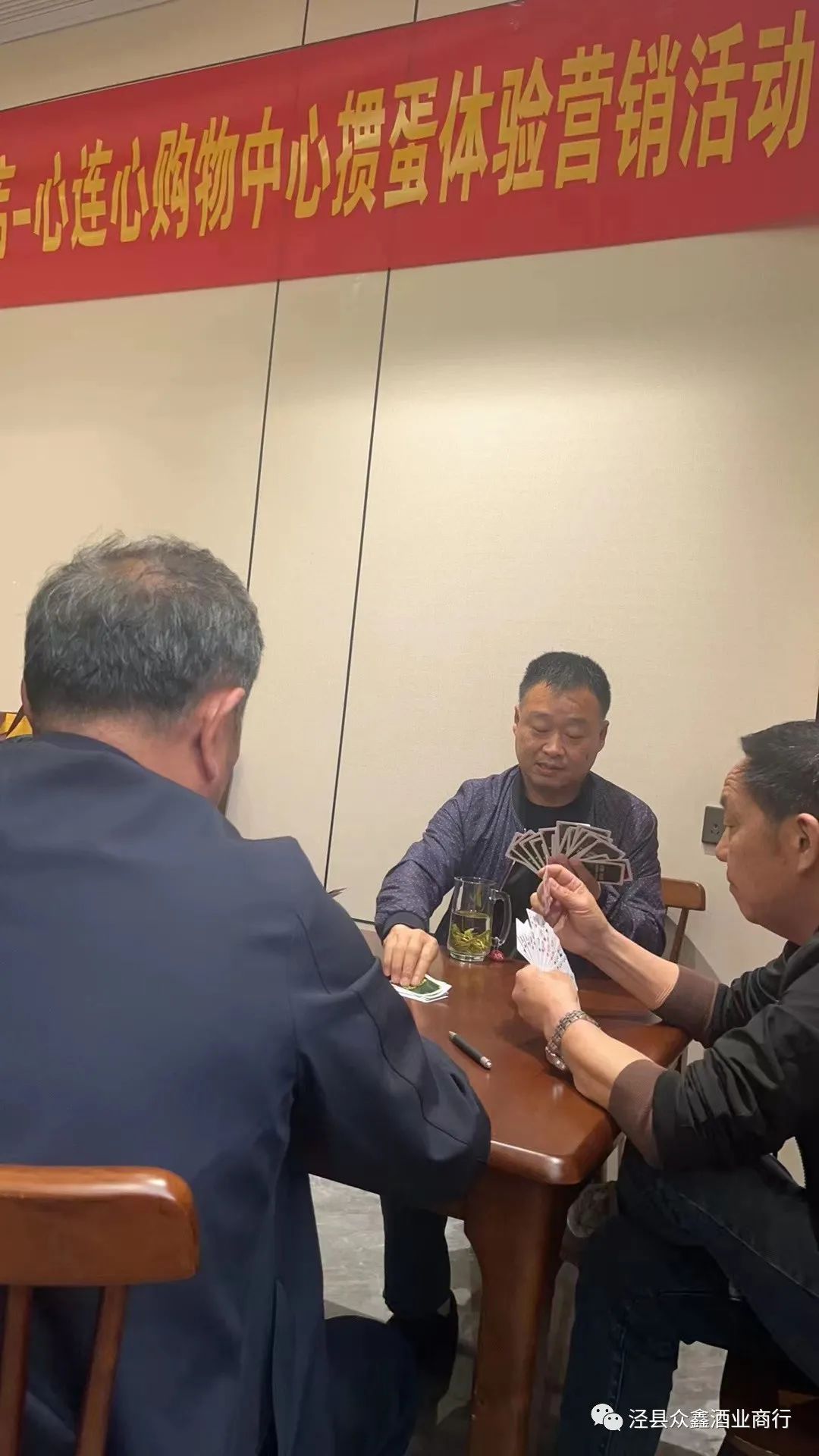 5月11日下午,泾县众鑫酒业李总带领着洞藏核心烟酒店心连心超市的洞藏核心消费者赶赴榔桥镇徽水河畔假日酒店开展掼蛋比赛活动!