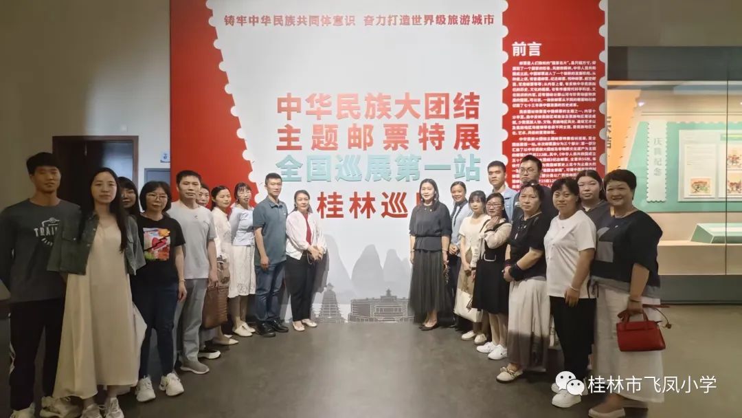 为深入学习宣传贯彻党的二十大精神,有形有感有效践行铸牢中华民族共同体意识,5月17日上午,桂林市飞凤小学党支部组织党团员和教师代表到桂林博物馆参观了“中华民族大团结主题邮票特展全国巡展第一站——桂林巡展”。