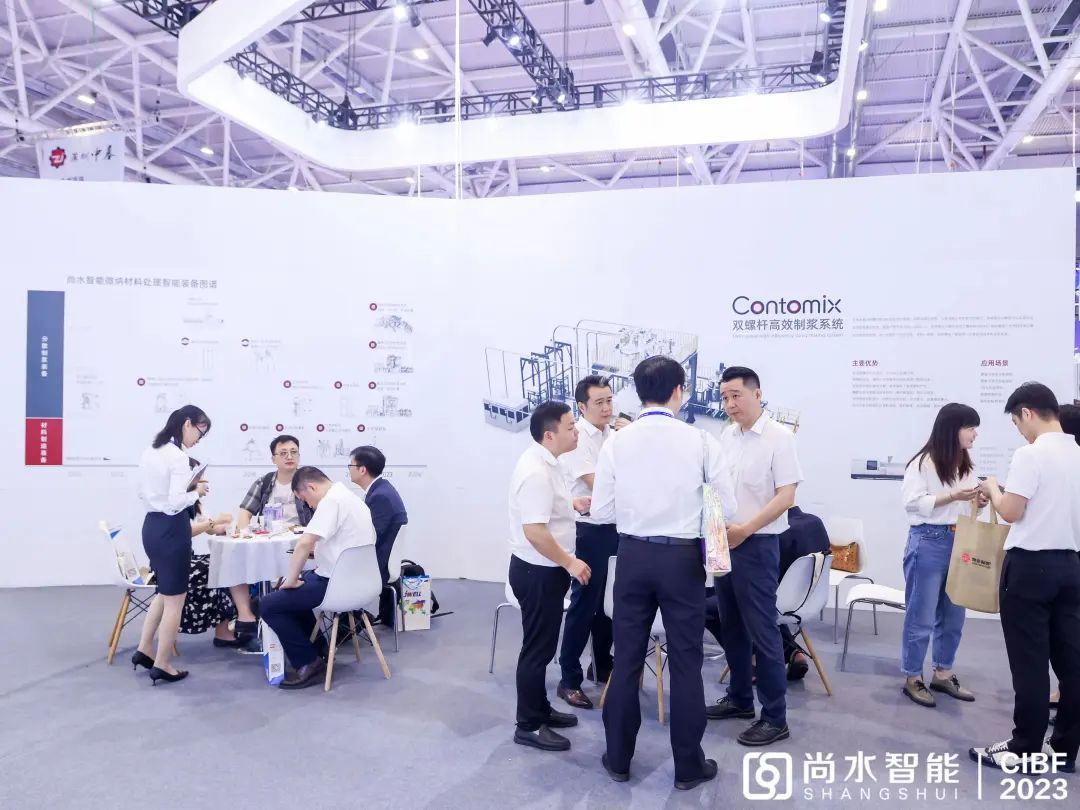 在展会现场,尚水智能向观众展出了最前沿的新能源电池及新材料领域整体解决方案:循环式高效制浆系统、高效捏合系统、立式介质研磨系统、干式球磨系统及双传动包覆系统,引来现场观展者的持续关注。