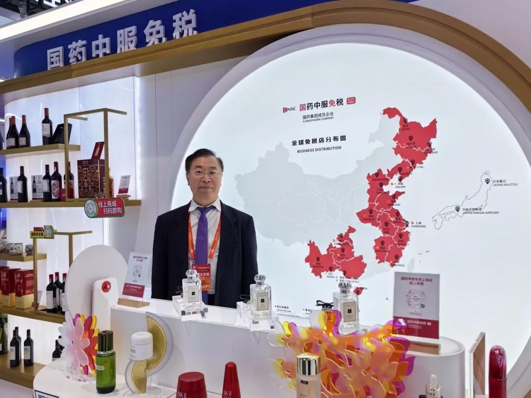 国药集团党委书记、董事长刘敬桢到国免展台,为免税业务站台助阵。