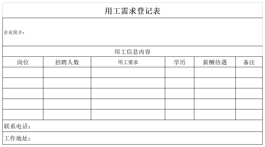 (一)有招聘需求的企业将营业执照、法人身份证和《用工信息表》发送至邮箱1414929021@qq.com。