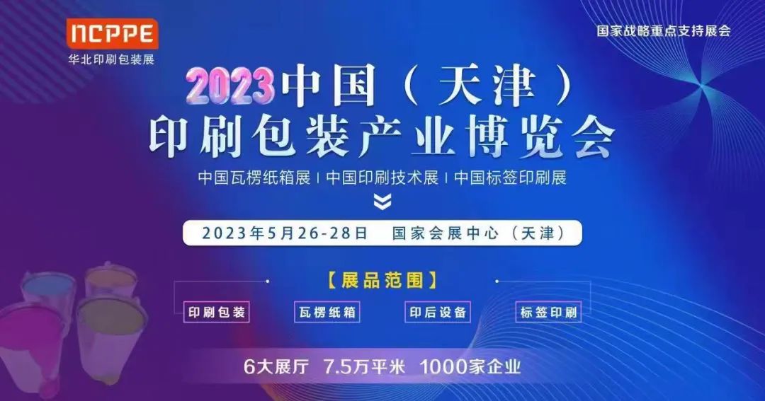 2023中国(天津)印刷包装产业博览会(简称:NCPPE华北印刷包装展)将于2023年5月26-28日在国家会展中心(天津)盛大召开!展览面积75000㎡、设立2000个标准展位、预计800家企业集中亮相。