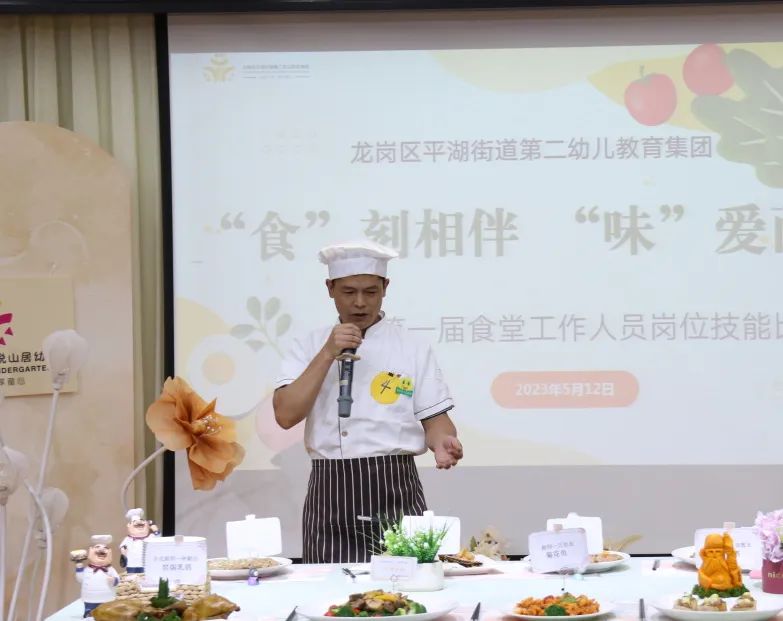 为提高集团各园饮食服务质量,丰富师生营养膳食,给食堂工作人员提供互相学习、展示技能的舞台,2023年5月12日下午,龙岗区平湖街道第二幼儿教育集团迎来了“食”刻相伴、“味”爱而来为主题的食堂工作人员技能比赛。