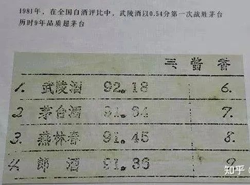 图片来自网络,在全国评酒会上,武陵酒超越茅台,得分92.18分,获得第一名。