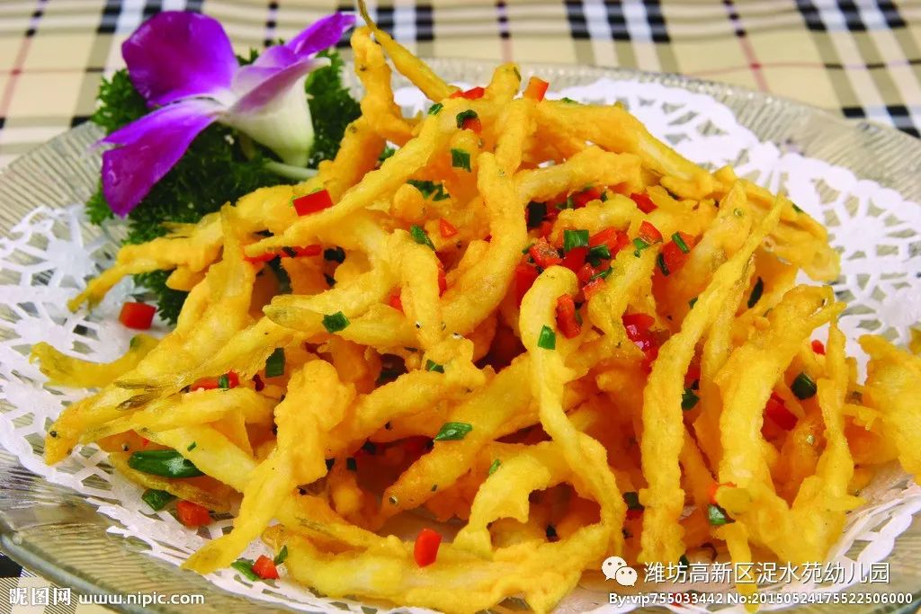 炸小银鱼、西葫芦木耳炒鸡蛋、萝卜丸子、热狗、南瓜燕麦粥