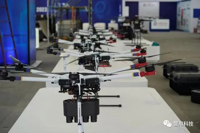 浙江公安在此次警博会上共展示30余款无人机挂载及侦测反制设备。别看展台上这些无人机长得差不多,它们的用处却千差万别,有喷淋标记无人机、绞盘运输无人机、矩阵抛投无人机、空中抓捕无人机、多发投弹器无人机等。