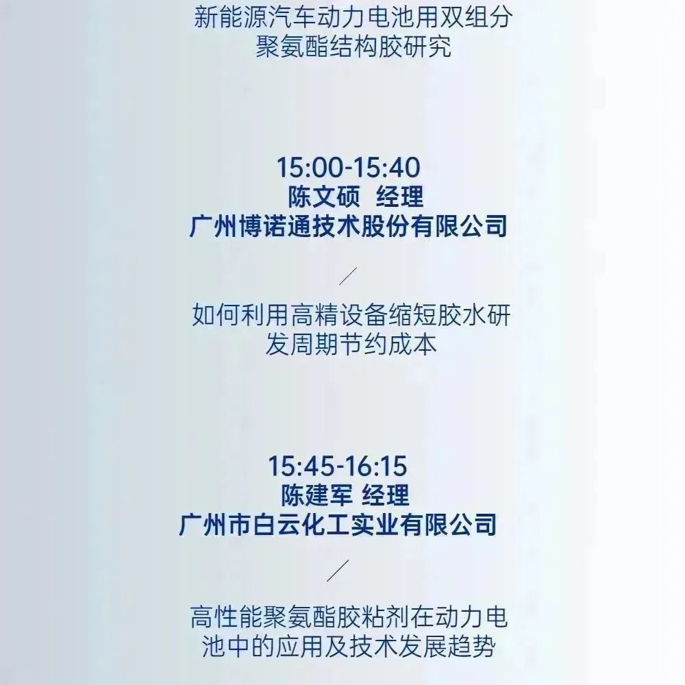 展会同期活动“大湾区胶粘技术论坛”和“新能源产业用胶技术论坛”,来自回天、硅宝、德邦、斯高特巴德的行业精英,展示了新能源热管理材料解决方案、电池动力研究、电子胶解决方案、胶粘剂研发等专业案例,深入畅谈应用行业的发展趋势与技术前瞻,为业内人士拓宽视野。