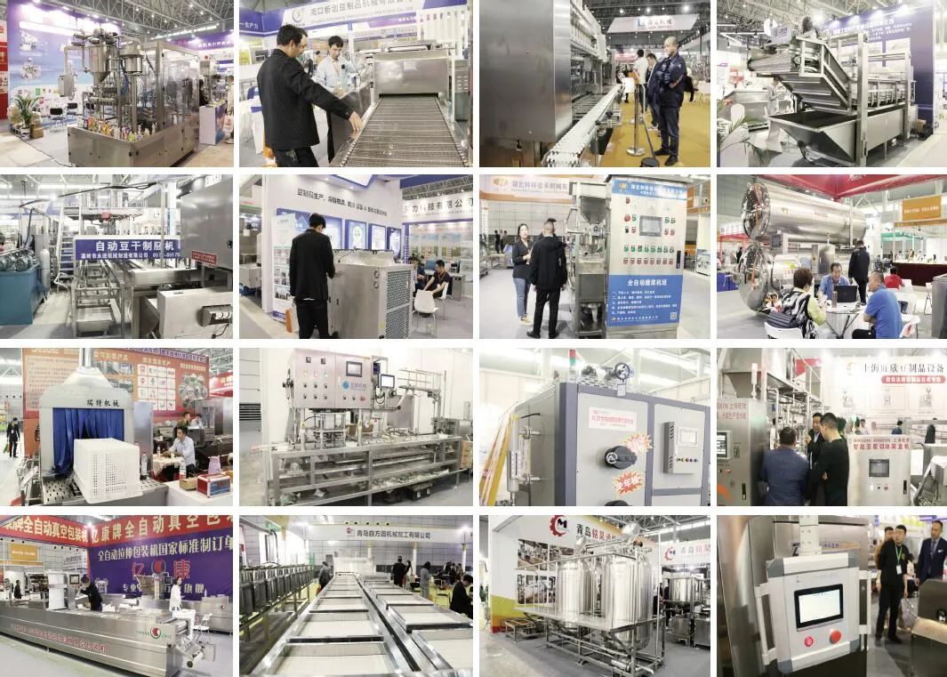 装备风向:更聚焦省人、节能、高效等关键词,装备更趋自动化和智能化比如洛克的有型箱有包布生产线、永进的智能冲浆豆腐生产线、铭浩通的微压煮浆罐、天鑫的350分离机、宏金的自动四联磨一体机、中科圣创的全自动豆皮机、宏阳豆府的全自动双层腐竹油皮一体机、周口新创的全自动千张生产线、自方圆的无包布自动制坯生产线、眷厚的四代包装机、康得利的全自动巴氏菌槽、中禾的全自动百叶生产线、骏杰的全自动千张机、旺欣的内脂豆腐包装机、超通的自动卤制生产线、博世达的自动香干包装机、永德的列管杀菌机(UHT)、云创利的响铃卷油炸设备、赫普的湿法超细粉碎系统、盛康盛世的包装袋表面去水流水线、金豹的225型分离机、科华的生态微循环豆芽机、昆布的豆芽包装机、科发的全自动箱式豆芽机、劳力的豆浆粉生产线、中祥的休闲豆干生产线、徽旺的油皮自动化生产线、真诺的蛋白植物肉生产线、昕欣的热软印打码机、铭本的大豆拉丝蛋白生产线、红森林的兰花干生产线、达能的自立袋全自动充填旋盖机、工匠时代的牛皮豆干生产线、金泰的杀菌锅、瑞特的豆制筐清洗机、纪中的自分离磨浆机、台锅的蒸汽发生器、堃鹏的自动封口包装机、博愿的自动熟浆工艺设备、亿康的530拉伸真空包装机、中鑫的智能三联磨、和正的容器灭菌清洗机、梵尔优的气调保鲜包装机、众川的内脂豆腐灌装封口机、衡迅的豆芽包装机、中膨的湿法蛋白生产线、轻技的板式杀菌成套设备等,以一机多用、自动点脑、节省蒸汽、一键操作、无人生产、成品率高、码跺误差小、产能高、运行稳定、操作方便、环保,乃至“古法工艺,现代技术”等为关键词,装备更趋自动化和智能化。