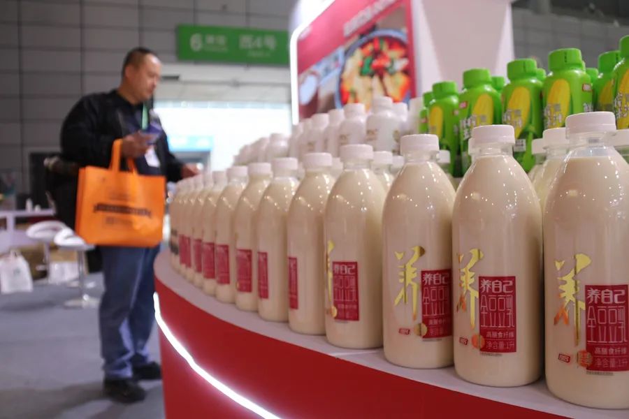 产品风向:向消费场景和营养功能等发力,头部企业品牌诠释市场热点比如祖名的全豆豆奶、人人福的绿豆沙冰、鸿光浪花的黄金豆腐、龙王的豆力脆大豆脆片、豆金道的锁鲜装冻腐竹、维维食品的高钙加锌营养豆奶粉、伊利植选的常温液态豆乳、清美的十合一(一袋有十种口味)豆干、银祥的超值鲜拼(豆制品拼盘)、金隆园的安庆豆腐(非遗)、金菜地的五香白干、黑益生物的即食豆花粉、兆丰农业的豆铃卷、食尚生物的素牛肉粒、长寿食品的花生蛋白粉、鲜南食品的全豆粉、纤田健康的全豆渣饮品(全膳食纤维补充剂)、素莲食品的植物蛋白金枪鱼罐头、品和汇的潮汕炸腐竹、大谷生物的火锅豆筋、出彩农业的高膳食纤维营养面条,以及适合出差旅游携带的四联装鲜腐乳、操作更简单方便的速溶豆浆粉、海底捞直供的响铃卷、直供餐饮的拉丝蛋白,再比如植选豆奶使用的“蒸汽浸入式灭酶工艺技术”、城头豆制品带来的“大豆素肉生产工艺”、江南大学的“大豆酸奶”技术、邵阳学院的酸浆豆腐专用菌种,乃至参展企业现场试吃的包浆豆腐、芝麻豆腐、蛋白鸭脖、豆面产品、定制豆筋等,以更聚焦消费场景、营养功能和产品特色等为代表,头部企业用一个个具体产品,多视角诠释了大豆和植物蛋白食品风向和市场热点。