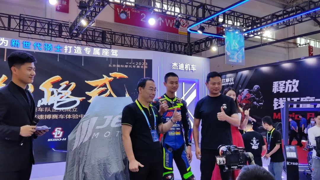 在北京摩展发布现场,杰迪机车JDMOTOR与武汉速博车队现场联合签约宣布,JDMOTOR将开始逐步尝试,与包括速博赛车体验中心在内的国内外优秀合作伙伴共同致力于产品性能提升、赛道体验活动。摒弃赞助参加ARRC亚洲公路锦标赛AP250组别赛事,同时还发布了2024 K750RR赛道梦想版配置构想及车队阵容,签约了首位车手倪天。
