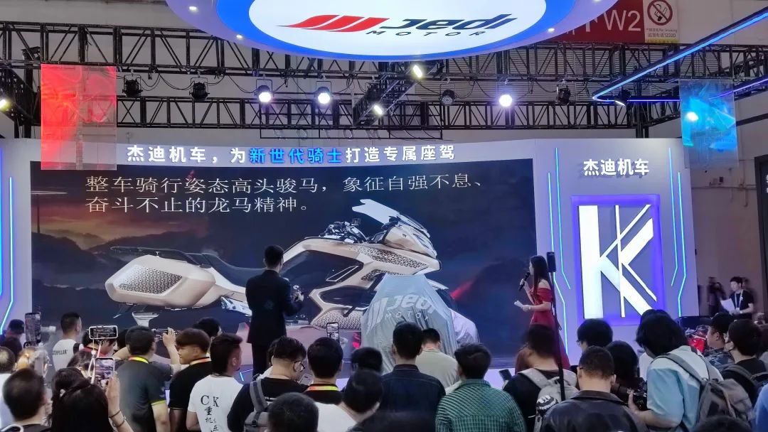 杰迪K750以前卫的外形设计以及科幻太空船的概念,一经亮相,就吸引了全行业的关注,被誉为国产最美仿赛。大面积的流体线条构成的车身主体,极具动感,车头部分流畅的空气动力学设计与车侧饱满的车身线条形成呼应,赛道味十足。本次北京,杰迪带来了K750的两款全新配色,炫速烈焰和电光嫩芽绿。一款激情动感、一款清新时尚,进一步丰富了K750的配色。K750用上了拥有自己专利技术的车架,其采用国内首创整体低压铸造一体成型的镁铝合金双翼梁车架、