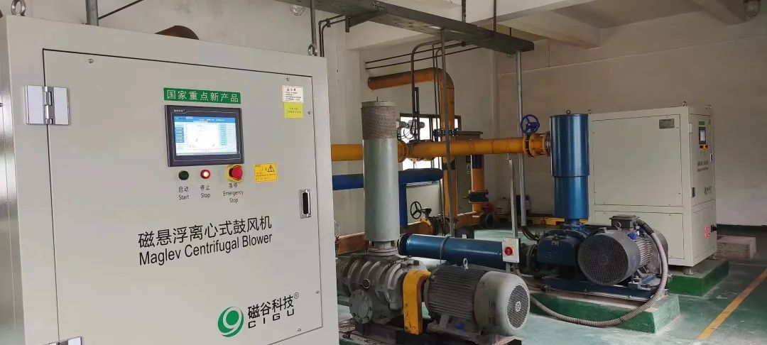 为降低鼓风机的运行耗能,安徽古井集团将旗下一批用于废水处理的罗茨鼓风机进行升级改造,磁谷科技根据现场使用工况,选用3台CG/B75型号的磁悬浮鼓风机对原有3台罗茨鼓风机进行替换。