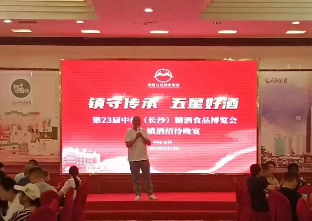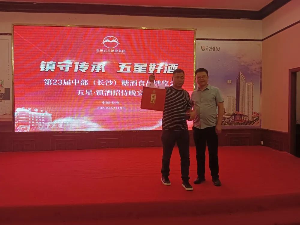 2023年5月18日晚,来自江西及湖南的400余名烟酒食品行业精英们汇聚开源鑫城4楼宴会厅参加欢迎晚宴,贵州五星集团的镇酒·精酿作为本次第23届中部(长沙)糖酒食品博览会晚宴官方指定招待用酒亮相。
