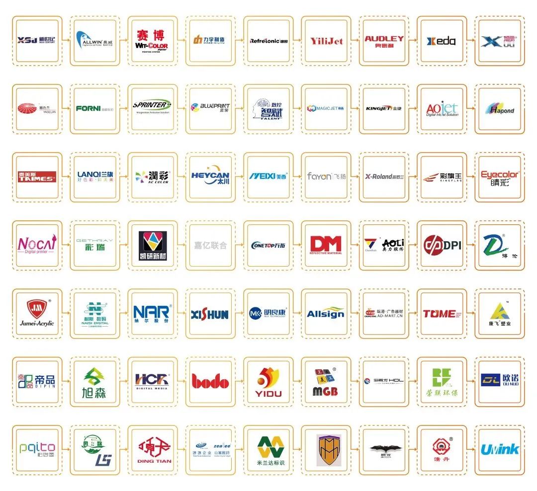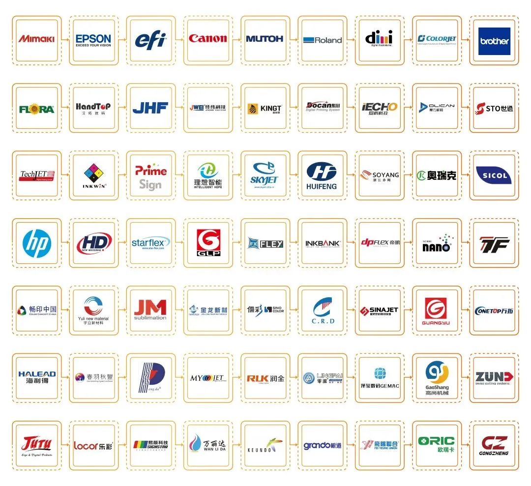 部分知名品牌企业:Mimaki、EPSON、EFI、Canon、MUTOH、ROLAND、Dilli、TOSHIBA、HP、Brother、Colorjet、汉拓、润天智、金恒丰、经纬、金谷田、东川、爱科、鼎力、世通、泰威、英威、飞行船等