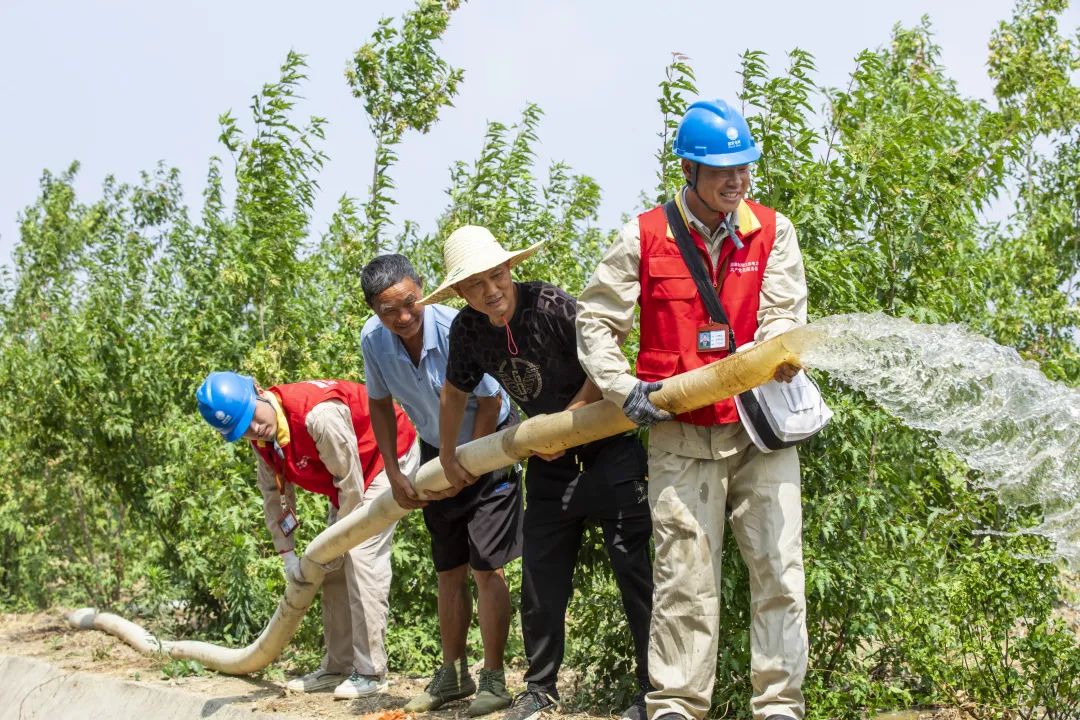 “水打上来了,有水了,大家伙的水管快来接......”近日,沭阳县悦来镇华新村村民李民喜大爷看到农田又有了源源不断的水源,紧紧握着国网沭阳县悦来供电所共产党员服务队队员的手,激动地说道,“已经接连两个月没有大雨了,我们急得都快要用上家里的自来水了,现在这天就算是不下雨,我们的庄稼也旱不上了,谢谢供电所的孩子们来给我们修抽水变压器!”看着白哗哗的水从大功率机井的管子里流淌出来,几位戴着草编帽、扛着铁锹的农民大爷们脸上露出欣慰的笑容。