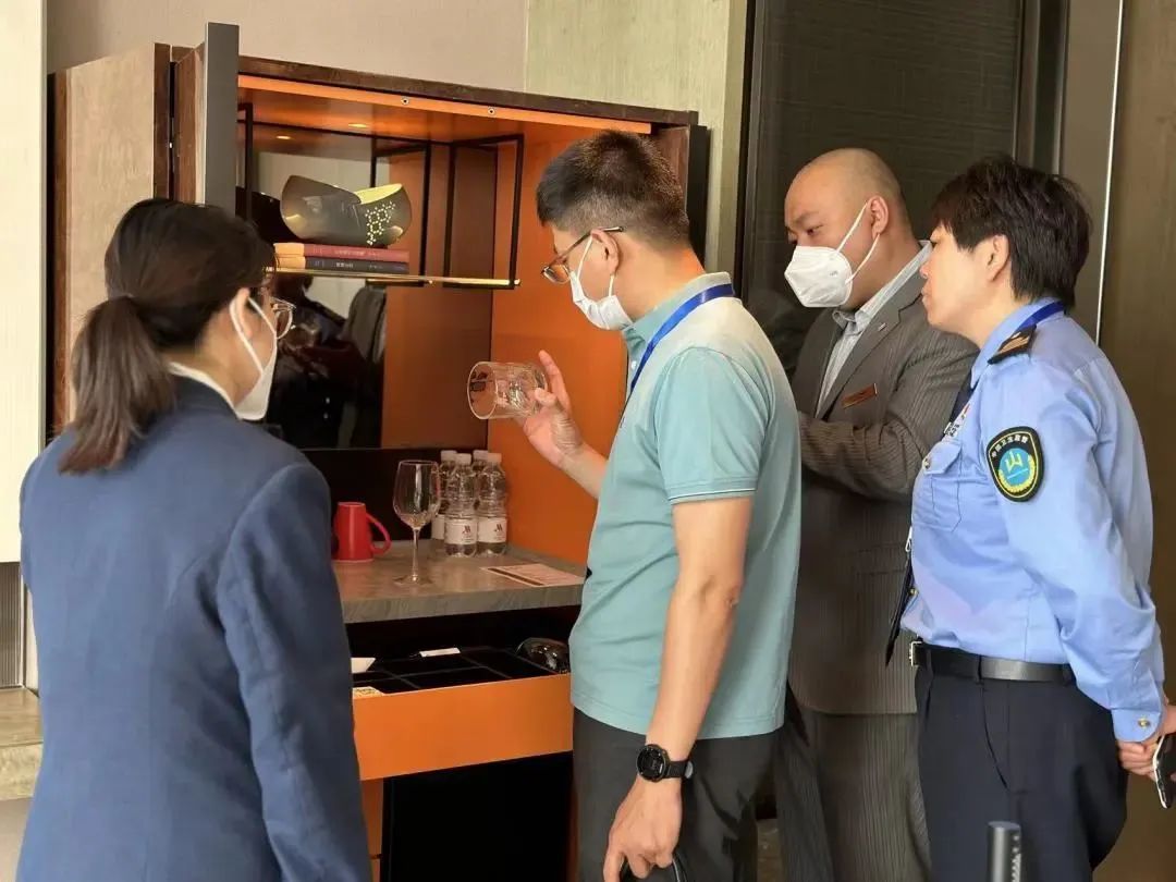 为提升酒店的卫生水平和服务会展的能力,津南卫生执法人员以会展为中心,对周边的住宿行业进行了全面的监督检查,重点关注客用品清洗、消毒、保洁的过程,查看消毒间的卫生设施设备、客用品配比、消毒剂配比、消毒顺序和时长、杯具拖鞋的转运过程、清洗消毒记录等是否符合实际使用情况,细扣消毒过程中的每一个步骤,确保做到一客一换一消毒。同时,针对病媒防治措施、空调清洗消毒进行了检查并提出要求,做好灭蚊蝇设施和空调系统的开启准备和定期清理工作,打造干净舒适的住宿环境。