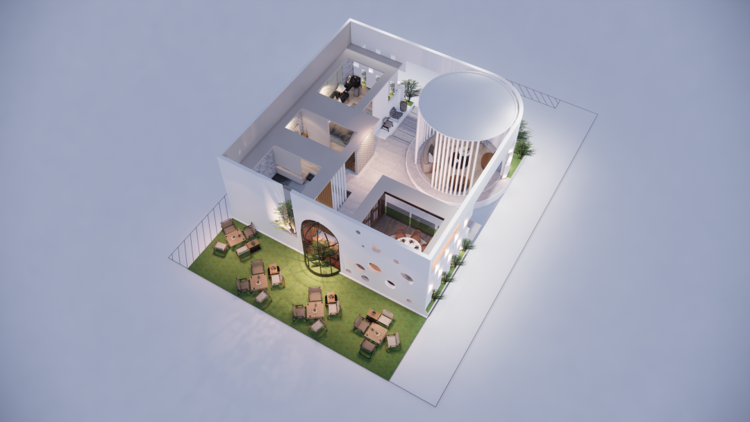 绿地上一幢白房子,彷佛展会上遗世独立的世外桃源。序幕拉开,简洁而克制的建筑语言,极致的东方意境,开放的布局,灵活的动线,以光为引子,以器物、家具为载体,链接传统与当代,构建的是一个人、自然、美学和融共生场域……