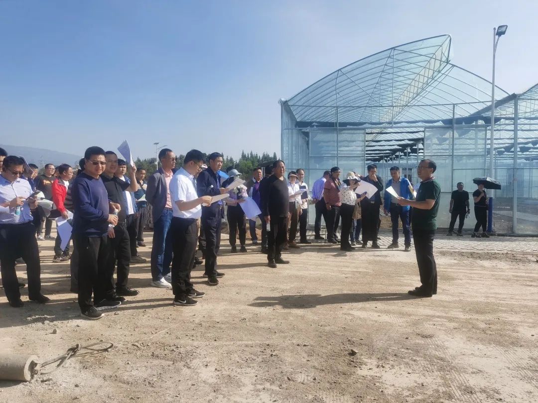 参会人员首先参观了云南精品花卉苗木种植基地。县林草局局长董艳春对基地建设情况以及作为第十届中国昆明国际观赏苗木展览会暨2023年宜良花街节举办会场的布展情况和招展情况进行了详细介绍。