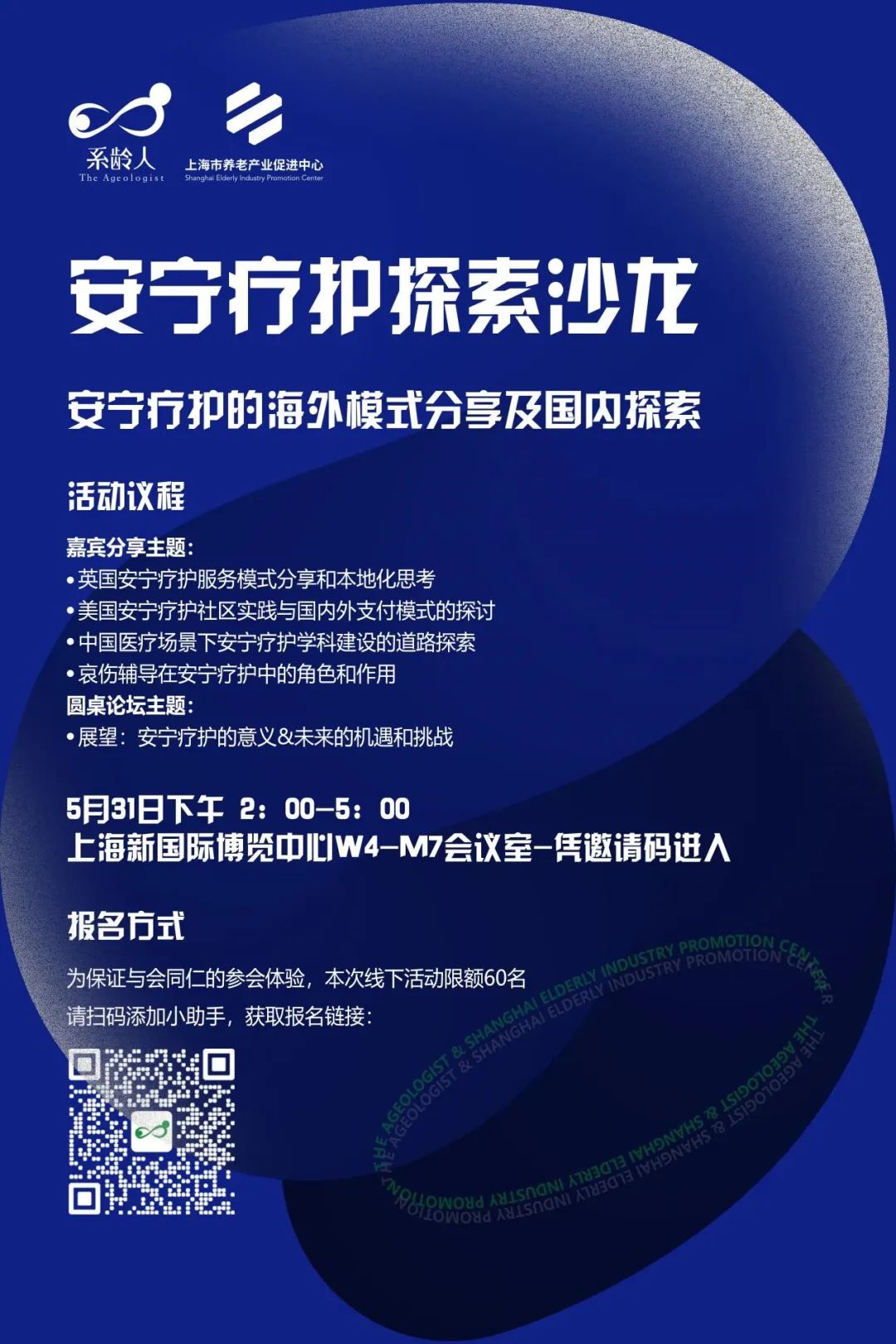 2023上海国际养老、辅具及康复医疗博览会(以下简称“老博会”)将于5月31日至6月1日于上海新国际博览中心举办。作为深耕老龄与康养领域多年的国际研究产业平台,系龄人受邀参加并组织老博会分论坛之一,安宁疗护主题沙龙。
