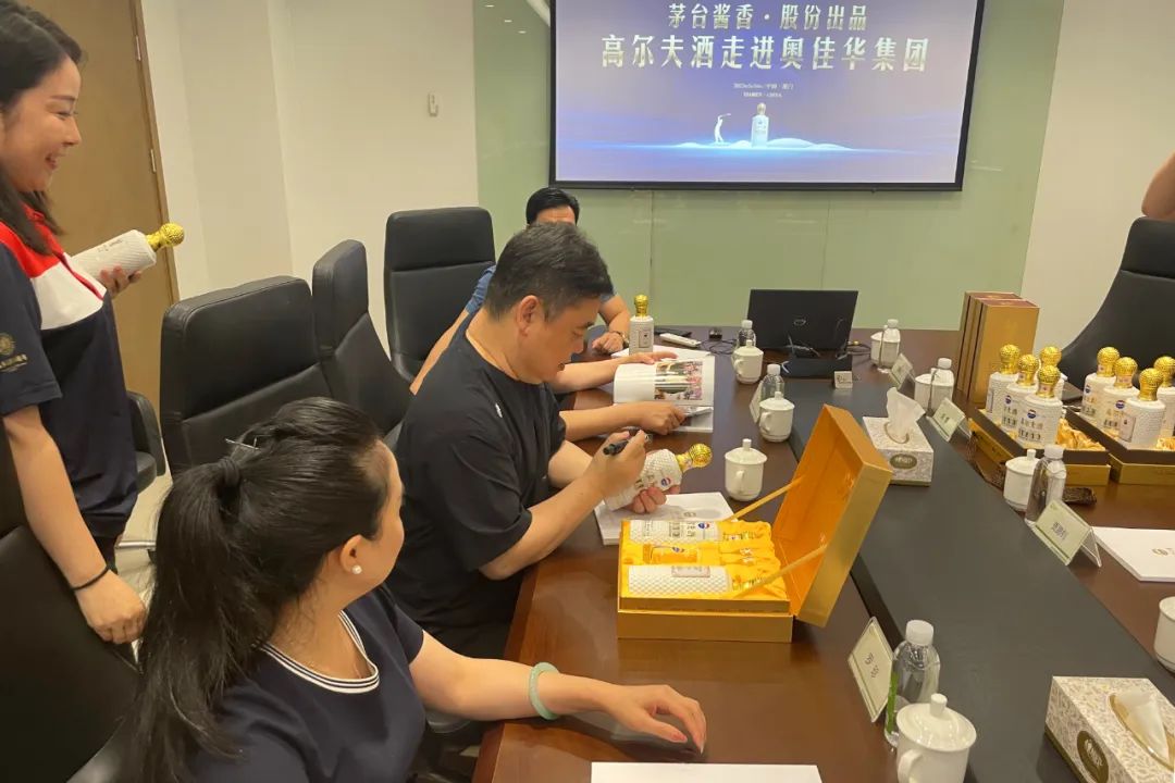 高尔夫酒销售公司福建省区经理贾鹏钊首先代表高尔夫酒销售公司向奥佳华各位领导的热烈欢迎表示衷心的感谢,对奥佳华的科技创新和注重传统中医文化的深入融合表示敬意。同时感谢厦门宏源祺商贸有限公司对高尔夫酒多年以来的关心和支持。贾鹏钊经理表示,高尔夫酒会加快海外市场的布局和推广,希望同奥佳华进行更加深入的学习和交流,共谋发展。