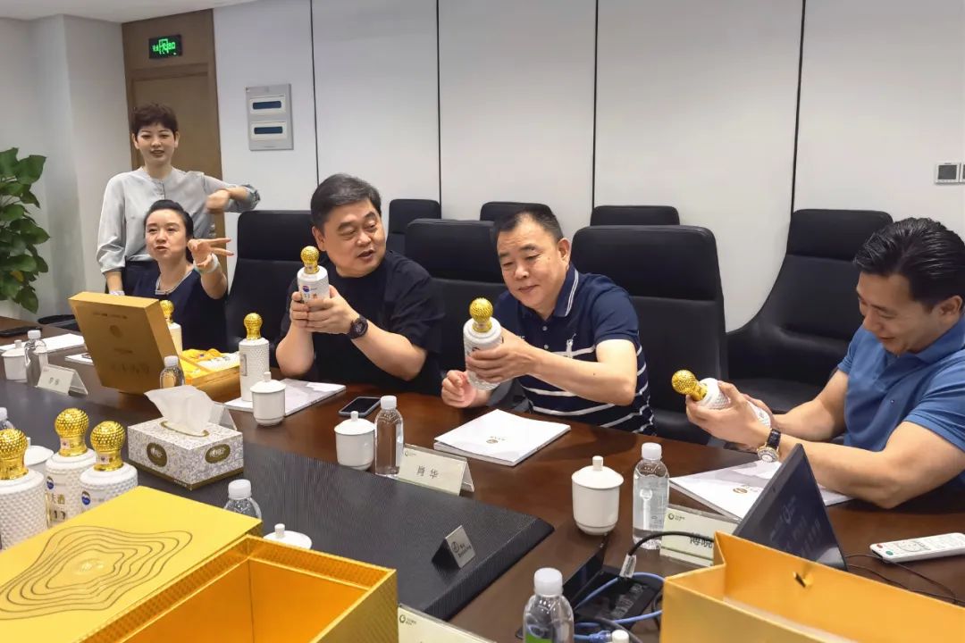 会议最后,邹剑寒董事长现场为高尔夫酒签名并与贾鹏钊经理合影留念。