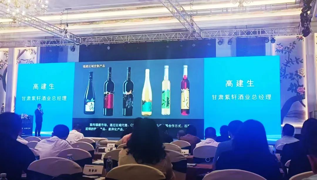 5月19日下午在甘肃代表团借此盛会在福州举办了甘肃特色优势产业招商推介会。为搭建闽甘两省合作交流全方位宣传展示甘肃发展优势和投资潜力,多层次拓展审核与福建省的经贸合作,共同推动两省经济高质量发展。参加此次活动的嘉宾有福建省人大常委会党组副书记、副主任庄稼汉,福建省人大常委委员、社会委副主任委员郑国华,福建省贸促会副会长谢续华,福建省福州市人大常委会党组副书记、副主任郑云春等各行业企业家代表及嘉宾近百人。紫轩酒业公司总经理、党委副书记高建生代表河西走廊产区葡萄酒企业在大会发言并推介河西走廊产区美酒。