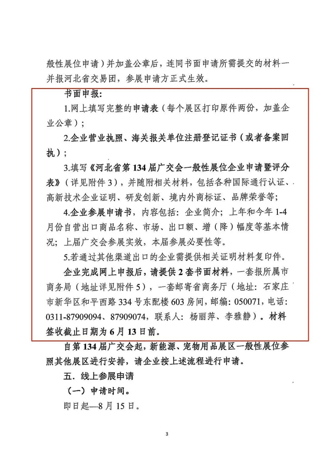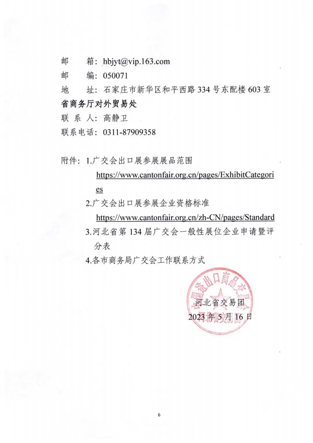 河北省交易团 | 关于第134届中国进出口商品交易会出口展参展申请事宜的通告