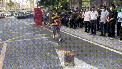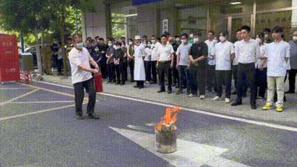 灭火器使用技能考核环节中,参训人员遵循“一提二拔三压四喷”的原则,操作熟练,迅速将火焰扑灭,较好掌握了灭火器使用方法。