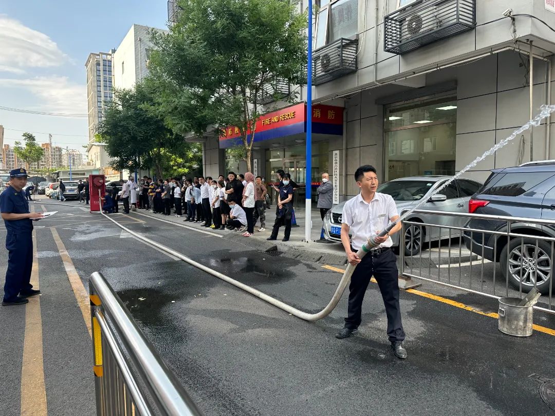 消火栓使用技能考核环节中,参训人员两人一组,分工配合,整个流程衔接流畅,顺利完成了考核内容。