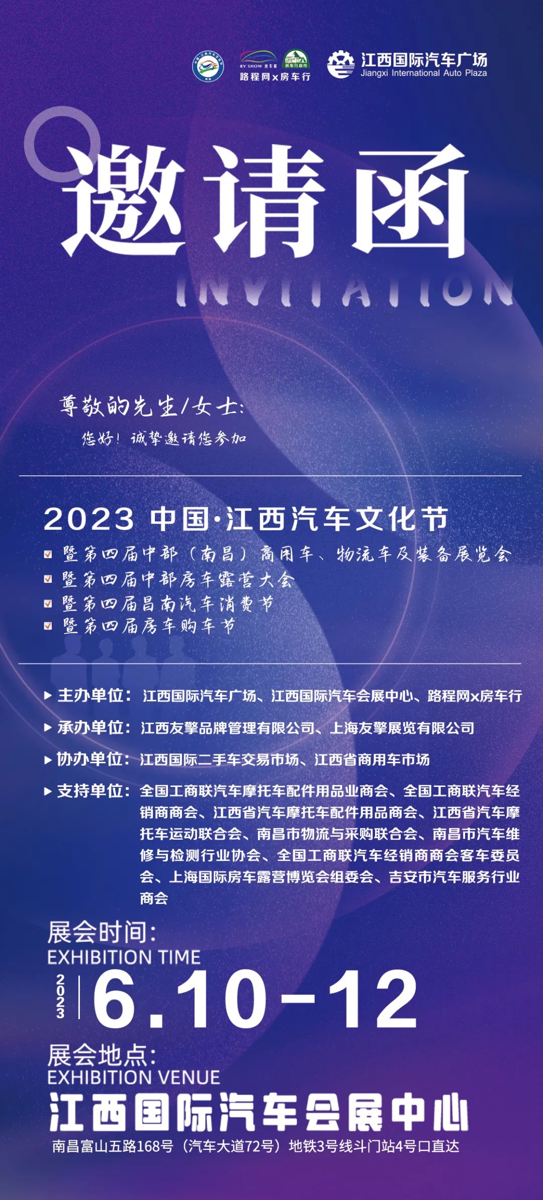 自驾车:导航江西国际汽车会展中心(南昌富山五路168号);