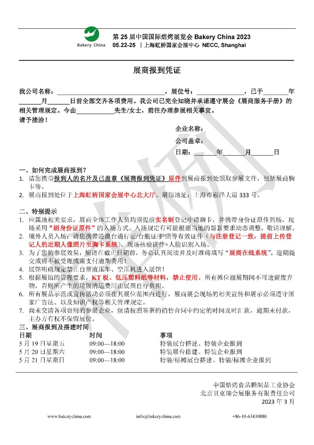 《展商报到凭证》样例