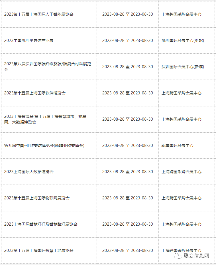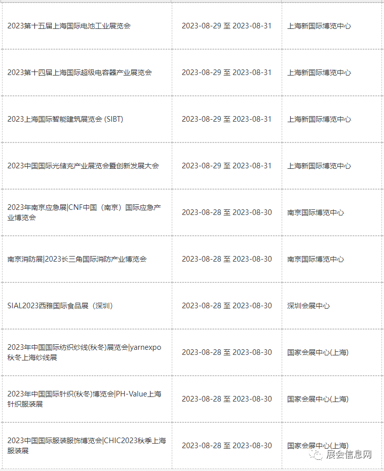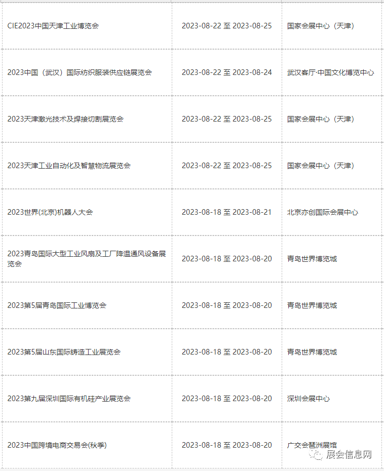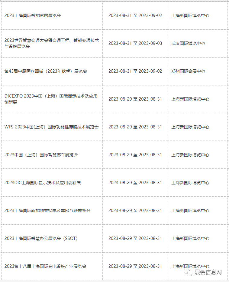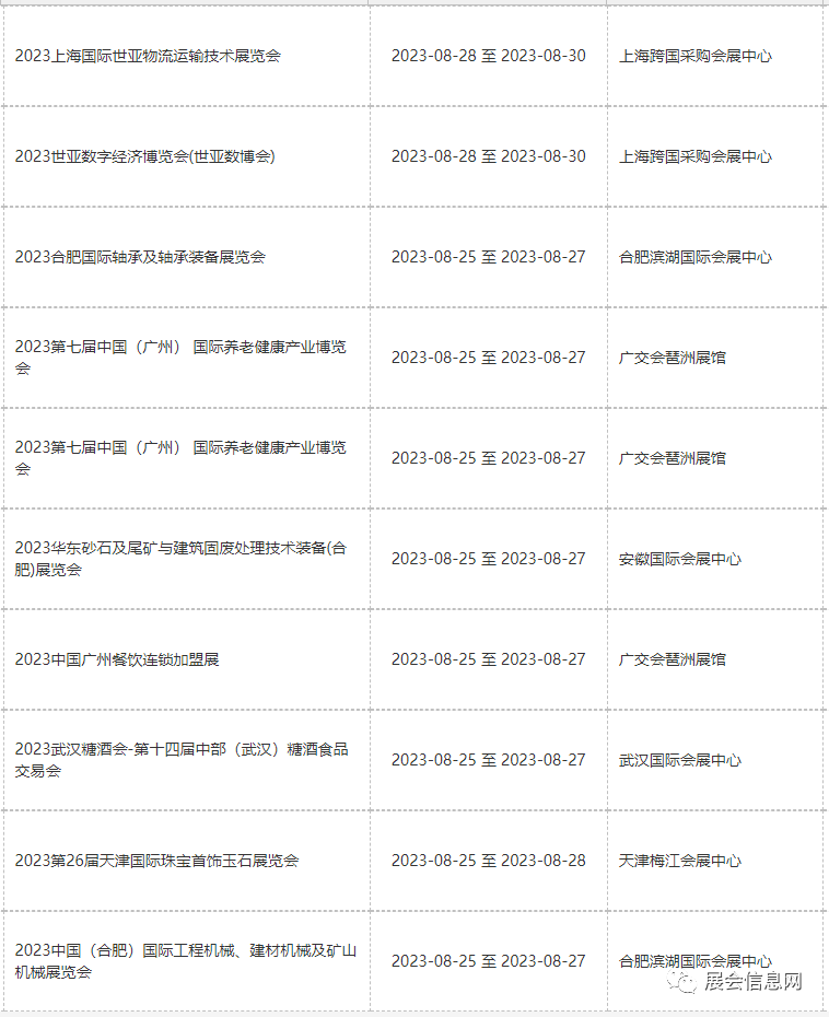 ● 8月份展会信息预报表更新时间为2023年05月19日;