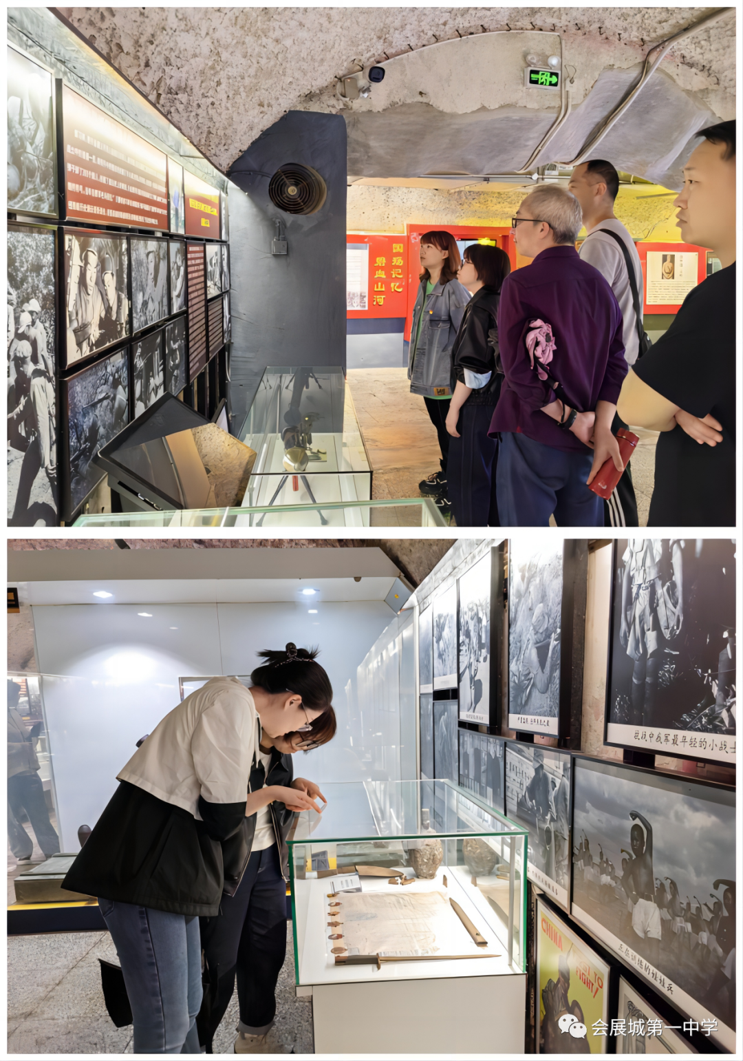 在党支部书记、校长陈晓惠同志的带领下,党员教师和入党积极分子走进了人防发展陈列厅、人防场景复原区和黔籍抗战老兵慰问室。教育馆还原了早期人防建设防空洞的历史原貌,体现贵州对老兵的关怀备至。在参观“山河同在区”与“黔军抗战复原区”这两个展区时,大家深受触动。其中挂在墙上的一组关于黔籍军人的“草鞋兵”照片格外吸人眼球,在战场上,他们总是穿着一双草鞋,跋山涉水、消灭残匪。虽然装备简陋,但在抗战期间,由黔籍官兵组成的11个师,于七七事变先后投入前线英勇作战,打出了黔籍军人的军威。