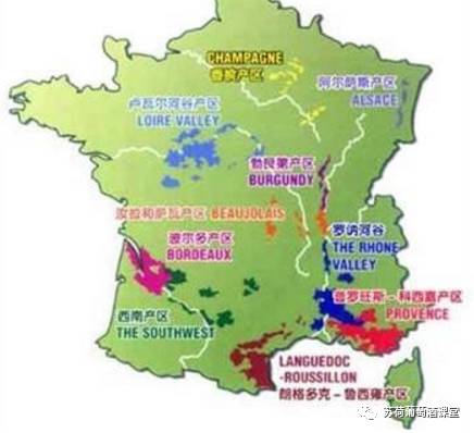 【法国各产区的位置示意图 来源:网络】