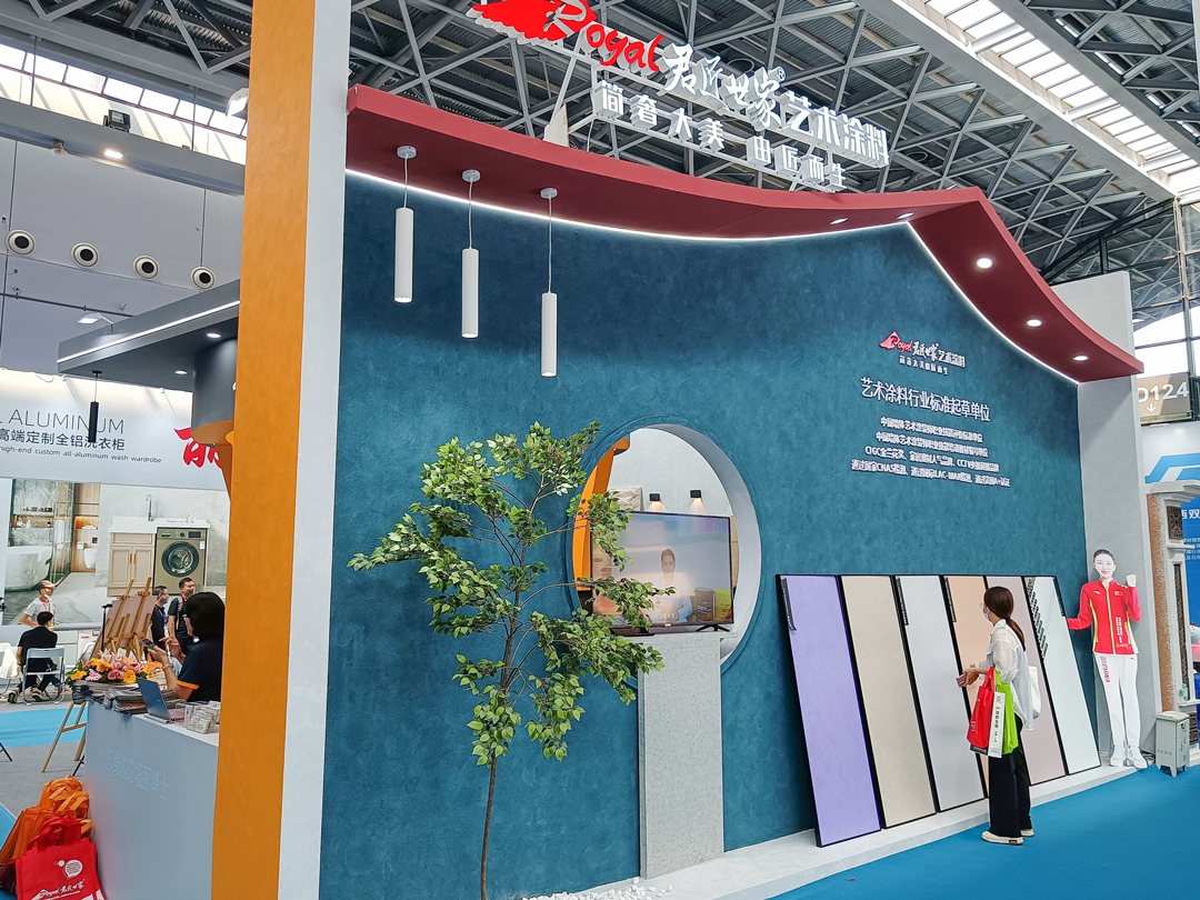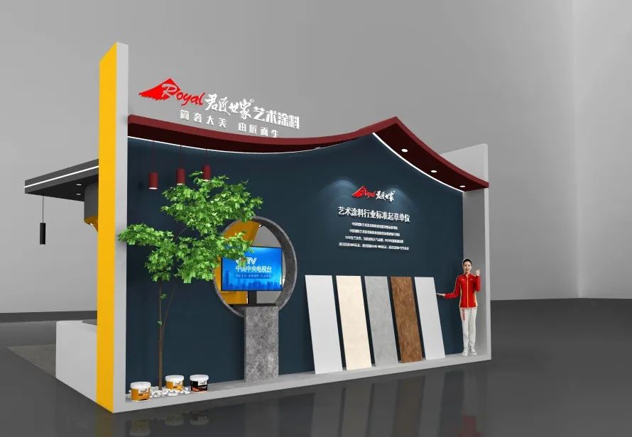 君匠世家艺术涂料以匠心匠魂为使命,传承东方皇家漆艺精髓,融合世界一流装饰涂料。T1225展馆设有君匠世家产品体验区。此造型是以君匠世家极具代表性的线条设计,其造型灵感于千万家瓦檐设计。散发出君匠世家中国建筑历史特色与技术的结合!作为艺术涂料行业国际品牌,参与了艺术涂料行业标准制定与起草,产品研发出发点以用户的健康并结合艺术涂料的多方面功能综合考虑,让用户用上健康环保的艺术涂料。