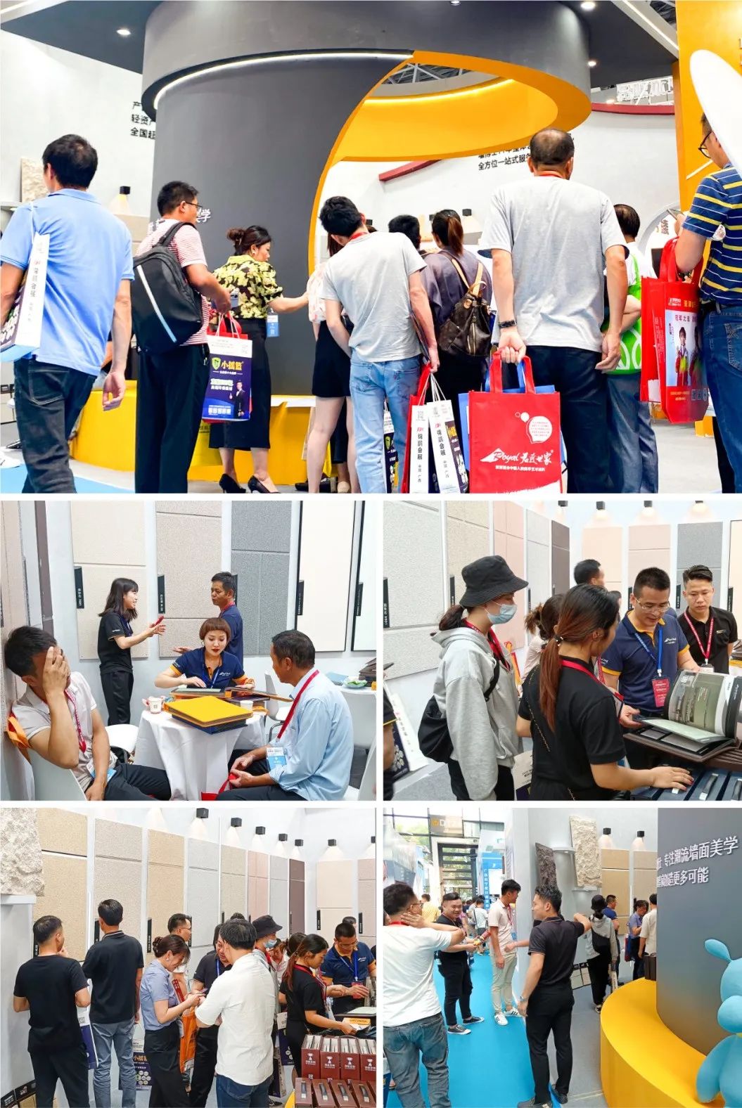 南宁建博会,布展企业以及参观人数不计其数,人潮涌动,君匠世家T1225展馆陈列了数款潮流新品,吸引了众多观展人士前来咨询,同时也吸引了来自全国各地行业人士与设计精英们相互进行探讨交流。相信在此次展会中,参加展会的观众能够很好的对艺术涂料行业以及工艺品有很大的认识与收获。展会现场热潮不减,来往人员络绎不绝,君匠世家团队为前来咨询的观众细心解答行业及产品问题,现场好评如潮。展会持续进行中......