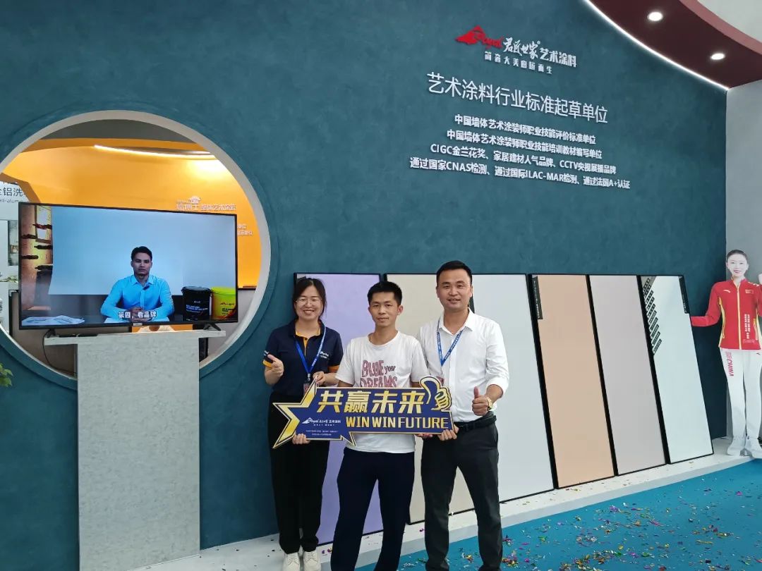 本次展会,君匠世家精制艺术,针对用户以及行业主流推出质感与实用性并存、色彩与创意碰撞、安全感与设计感交融的艺术涂料。为用户呈现出极具风格特色的展会。同时为用户制定了全新的涂装解决方案,让加盟商轻松创业,经营无忧!