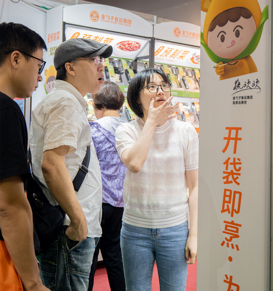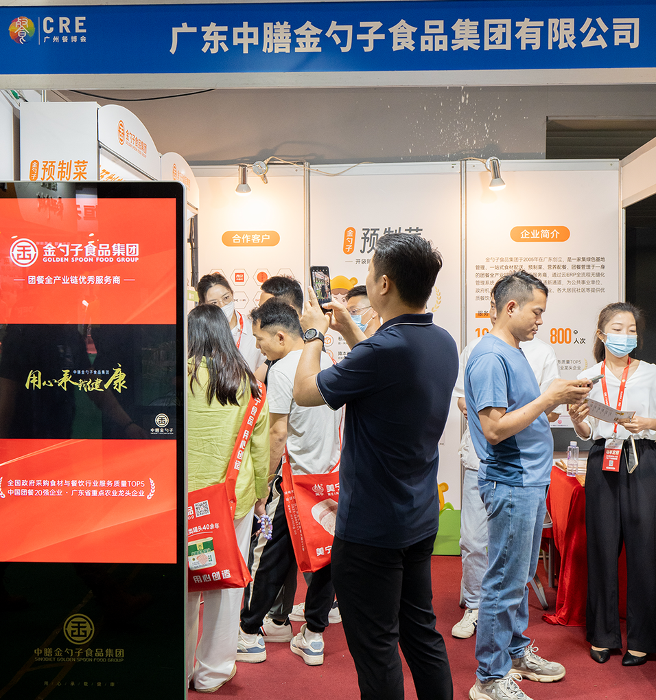 广东中膳金勺子食品集团有限公司以粤字号农业品牌“金勺子预制菜”亮相展会,推出包装鲜切菜、生鲜半成品、快手菜、火锅菜等系列营养便捷、美味健康的新品,吸引无数人前来参观交流。