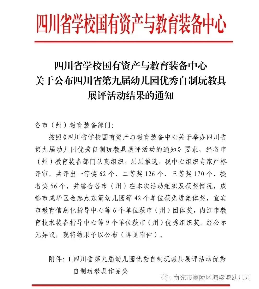 唯有扎根,方可托举枝繁叶茂。耕耘结硕果,奋进再扬帆!再次热烈祝贺南充市嘉陵区塘殿堰幼儿园玩教具荣获省级一等奖,塘幼老师们也将以此共勉,在专业成长的道路上继续发扬追求卓越的精神,锐意创新,不断进取!