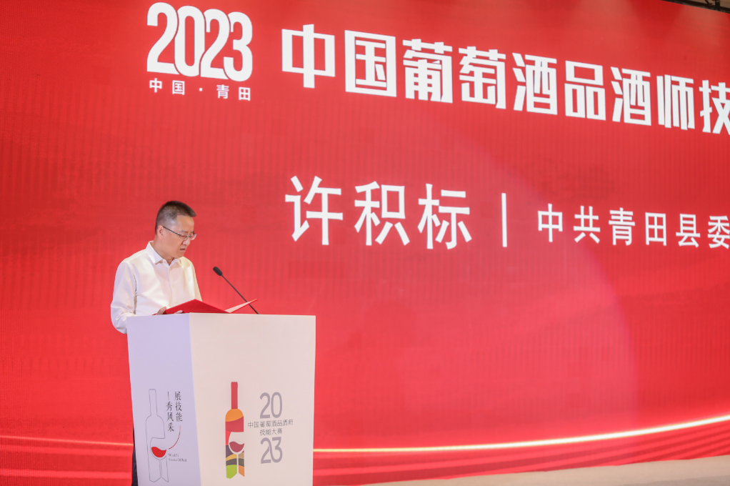 许积标在致辞中表示,本次大赛是一次高水平的全国职业技能竞赛,也是一次切磋技艺、对标学习、展示风采的比武盛会,青田会全力以赴做好赛事各项服务保障,为广大选手赛出风格、赛出水平创造良好条件。青田将进一步放大此次大赛的综合效应,努力培育更多技艺精湛的品酒大师、侨乡名师,推动我县葡萄酒产业实现更高质量发展,为建设高质量共同富裕的世界青田提供坚实的产业支撑。