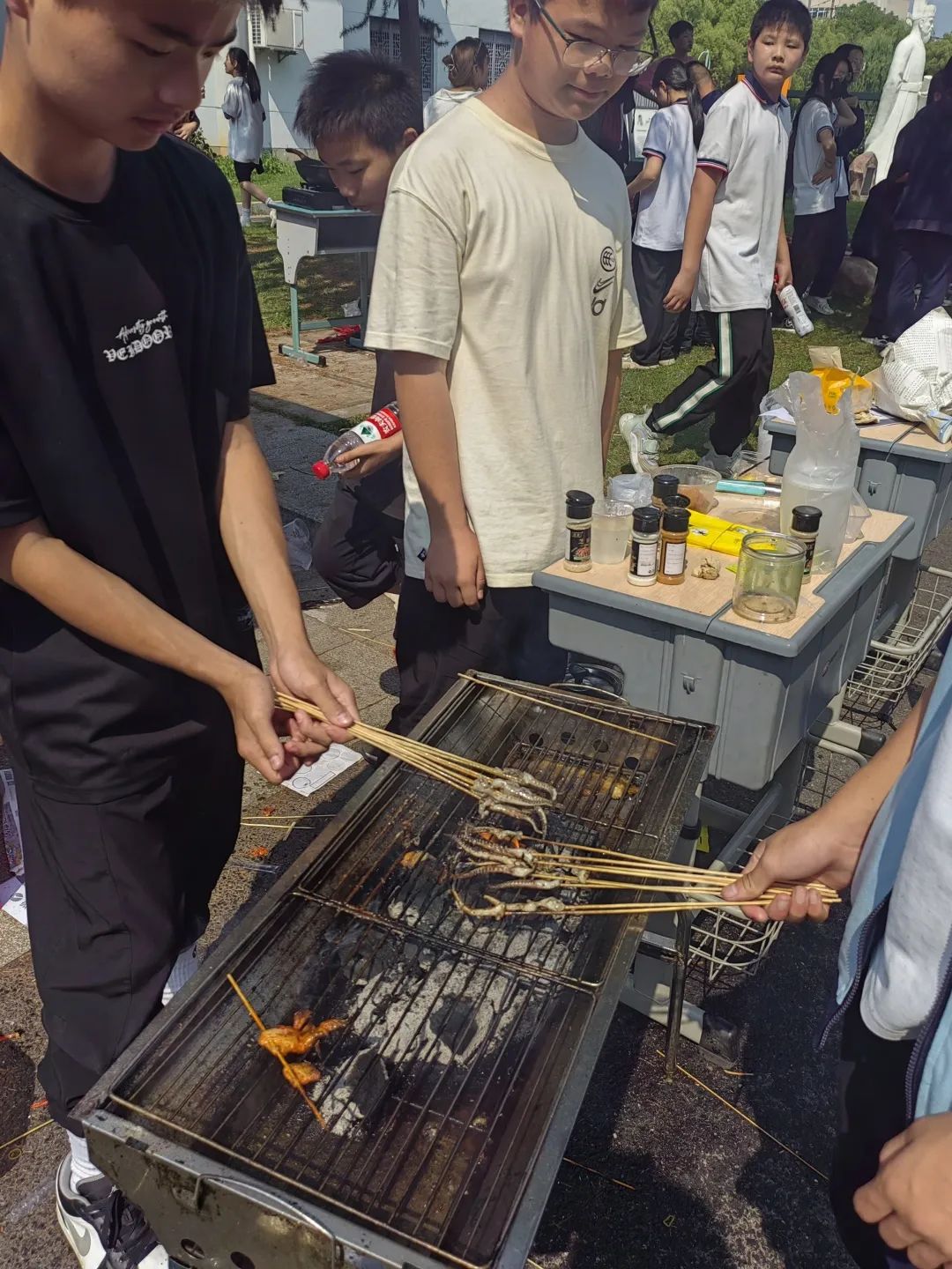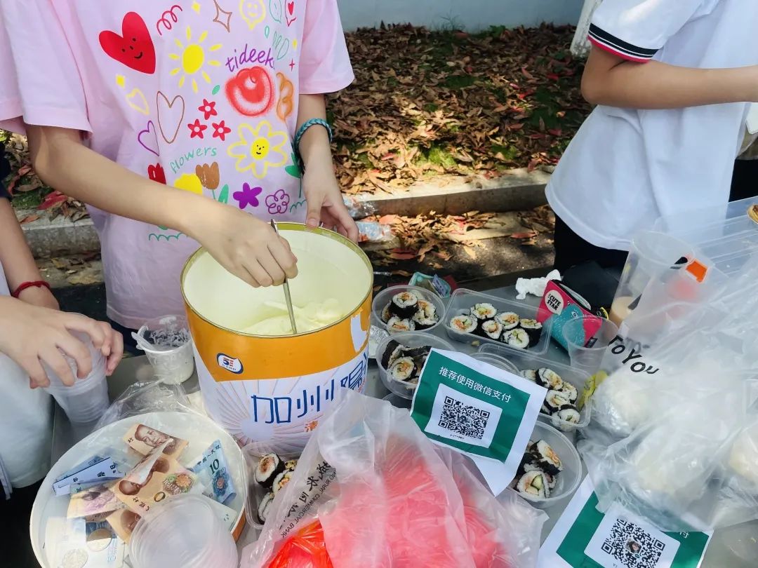 从方案策划、团队合作、食材采购到宣传营销、烹饪销售,所有的过程学生全程参与,书院中学成长大道上吆喝声此起彼伏,师生们大快朵颐,欢声笑语,美食飘香,全校师生享受了一场快乐轻松的舌尖盛宴。